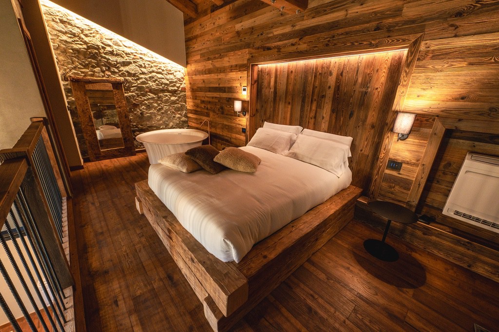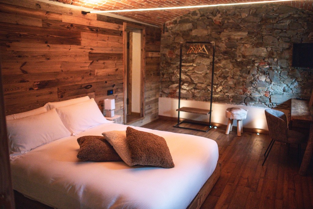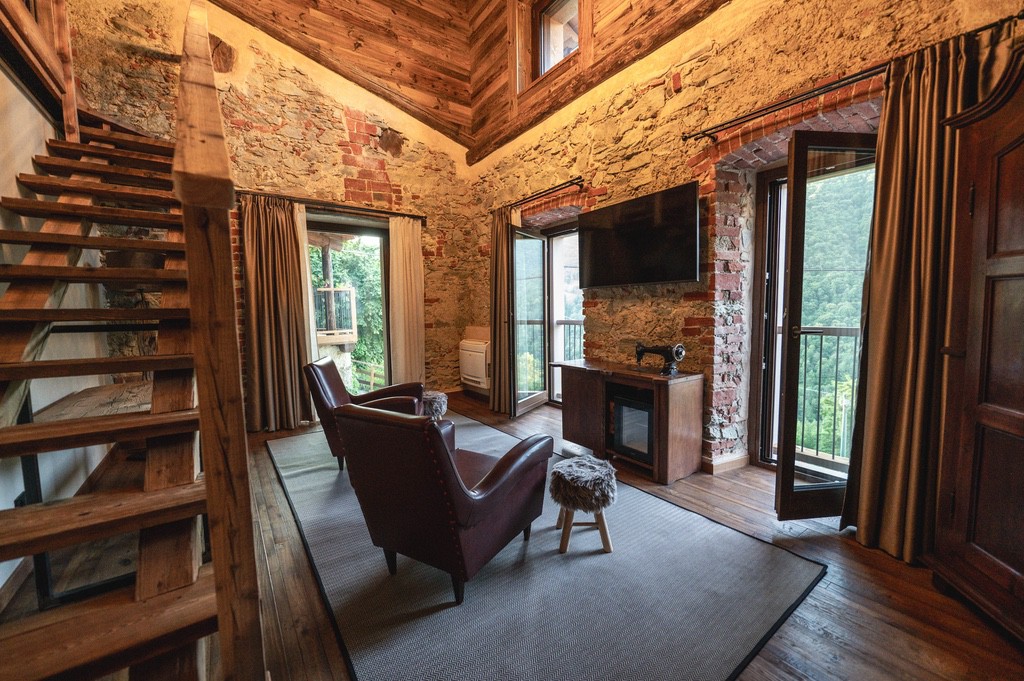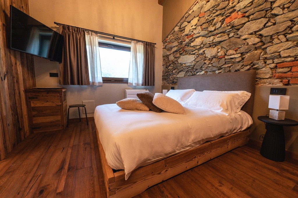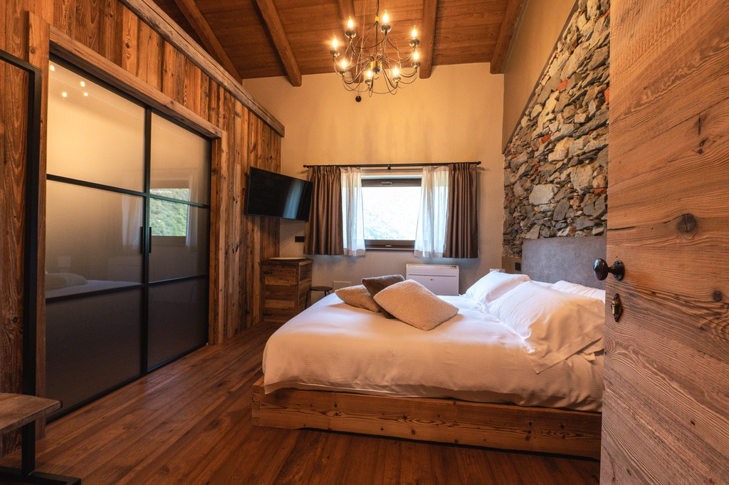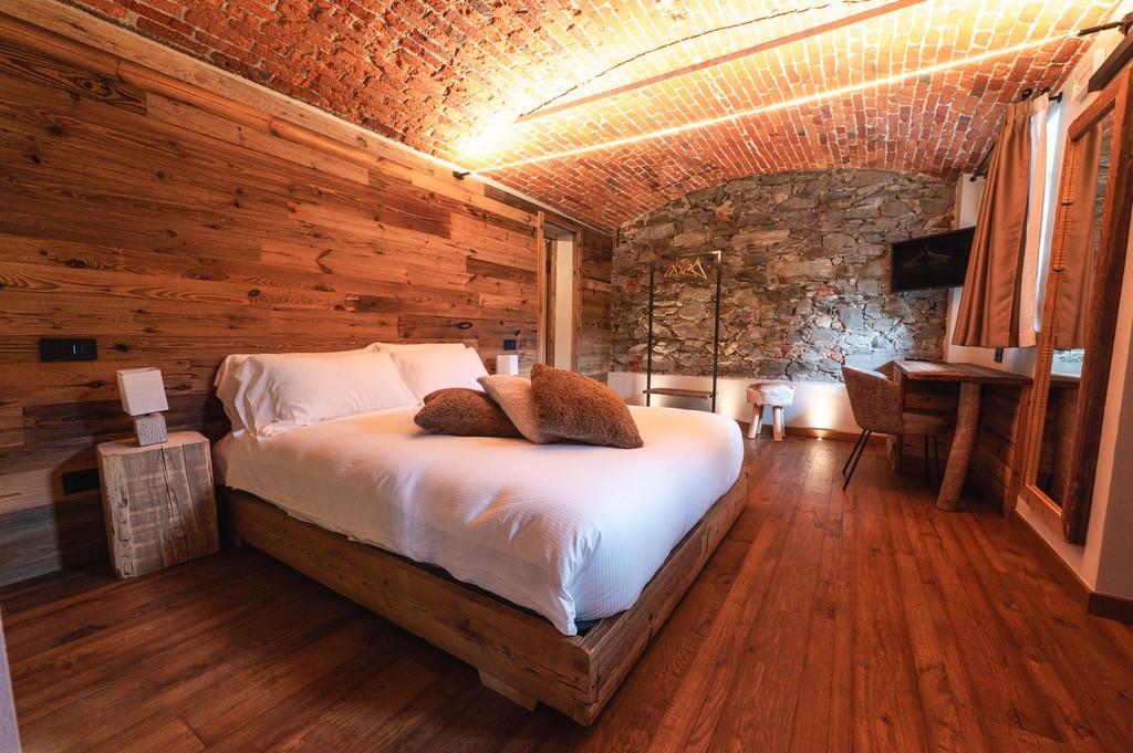 Immersa nelle Alpi piemontesi, Ca d' Vetu offre vista mozzafiato, giardino, terrazze panoramiche e ambienti pieni di charme.